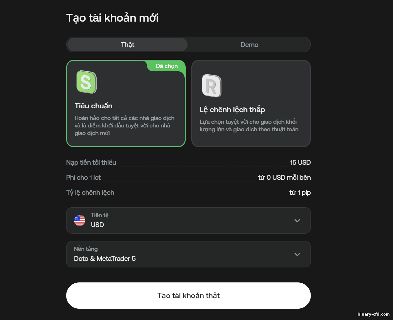 - Doto cung cấp loại tài khoản nào và mở ra sao?