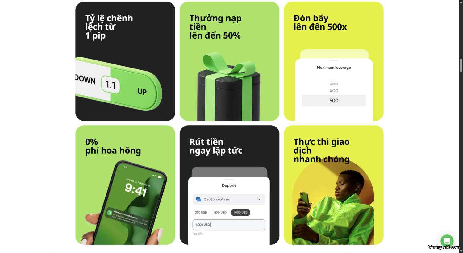 Nhà môi giới phục vụ mọi mức kinh nghiệm — từ người mới tới chuyên gia. Người mới nhận hướng dẫn từng bước để mở lệnh đầu tiên cùng tài liệu kiến thức cơ bản, trong khi trader dày dạn đánh giá cao danh mục hơn 130 thị trường và điều kiện cạnh tranh. Công ty tự hào về nền tảng web và mobile tự phát triển, xây dựng từ phản hồi trader: tích hợp biểu đồ TradingView và công cụ phân tích tiện dụng. Các terminal MetaTrader 4/5 truyền thống vẫn có sẵn cho người ưa cổ điển.