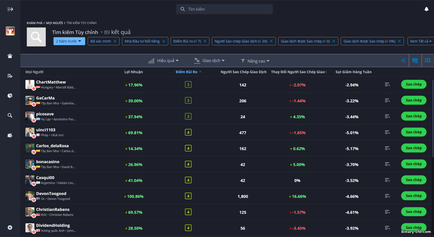 - Bạn có thể sao chép tối đa 100 nhà đầu tư cùng lúc.