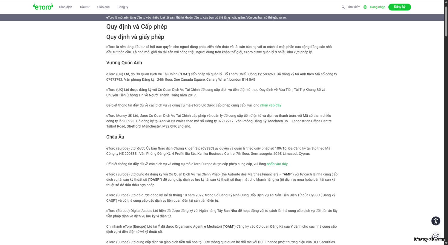 - Độ tin cậy eToro, giấy phép và quy định