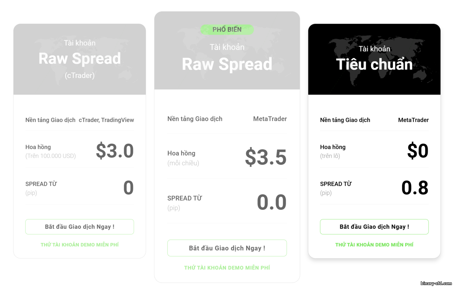- Loại tài khoản và điều kiện giao dịch