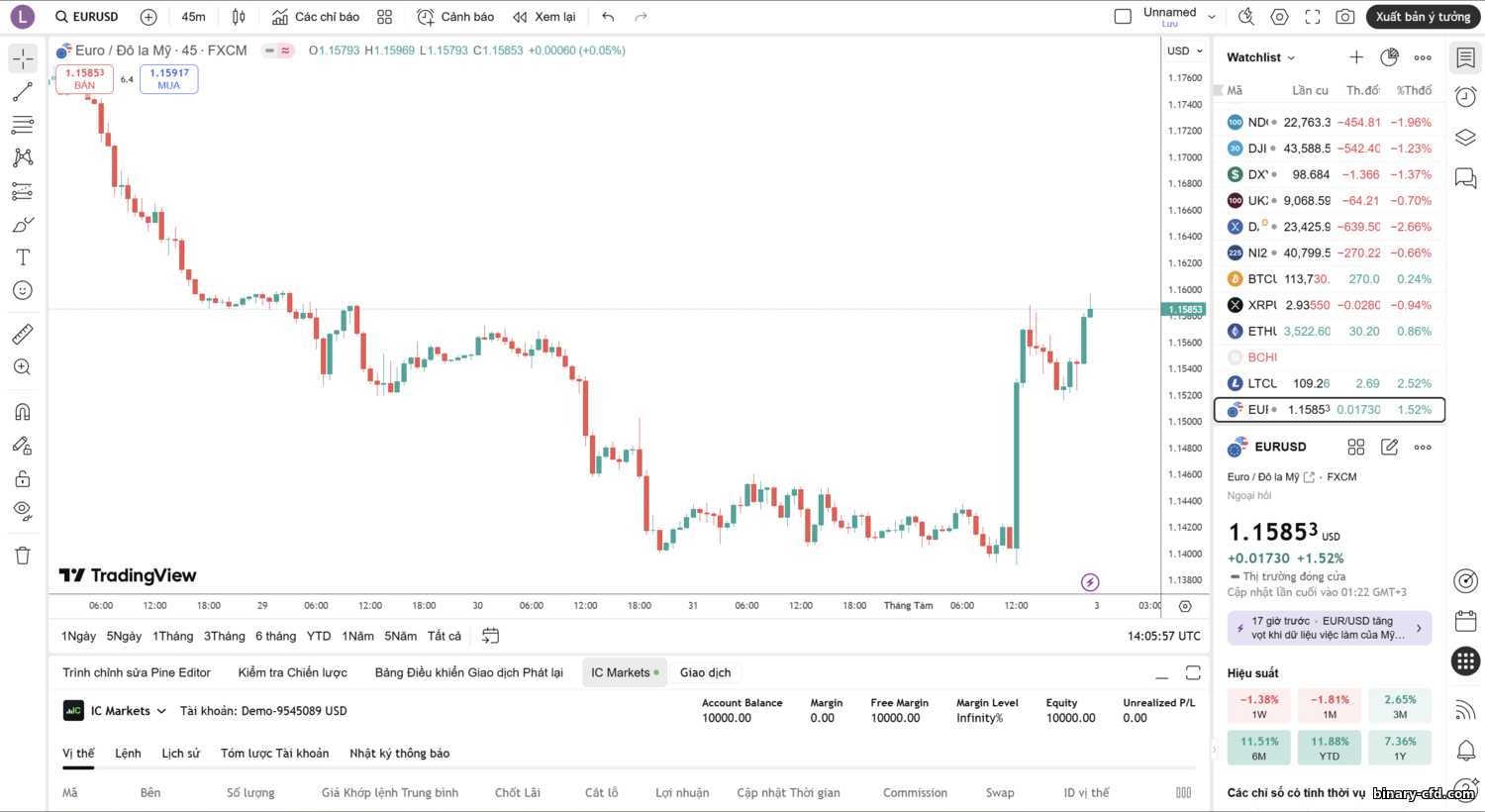 Vì sao TradingView? Thư viện chỉ báo lớn (bao gồm script cộng đồng), biểu đồ xuất sắc, layout tùy chỉnh và chức năng cộng đồng (ý tưởng, chat, stream). Nhiều trader mới ưa phân tích trên TradingView — IC Markets giúp việc này trở nên đơn giản.