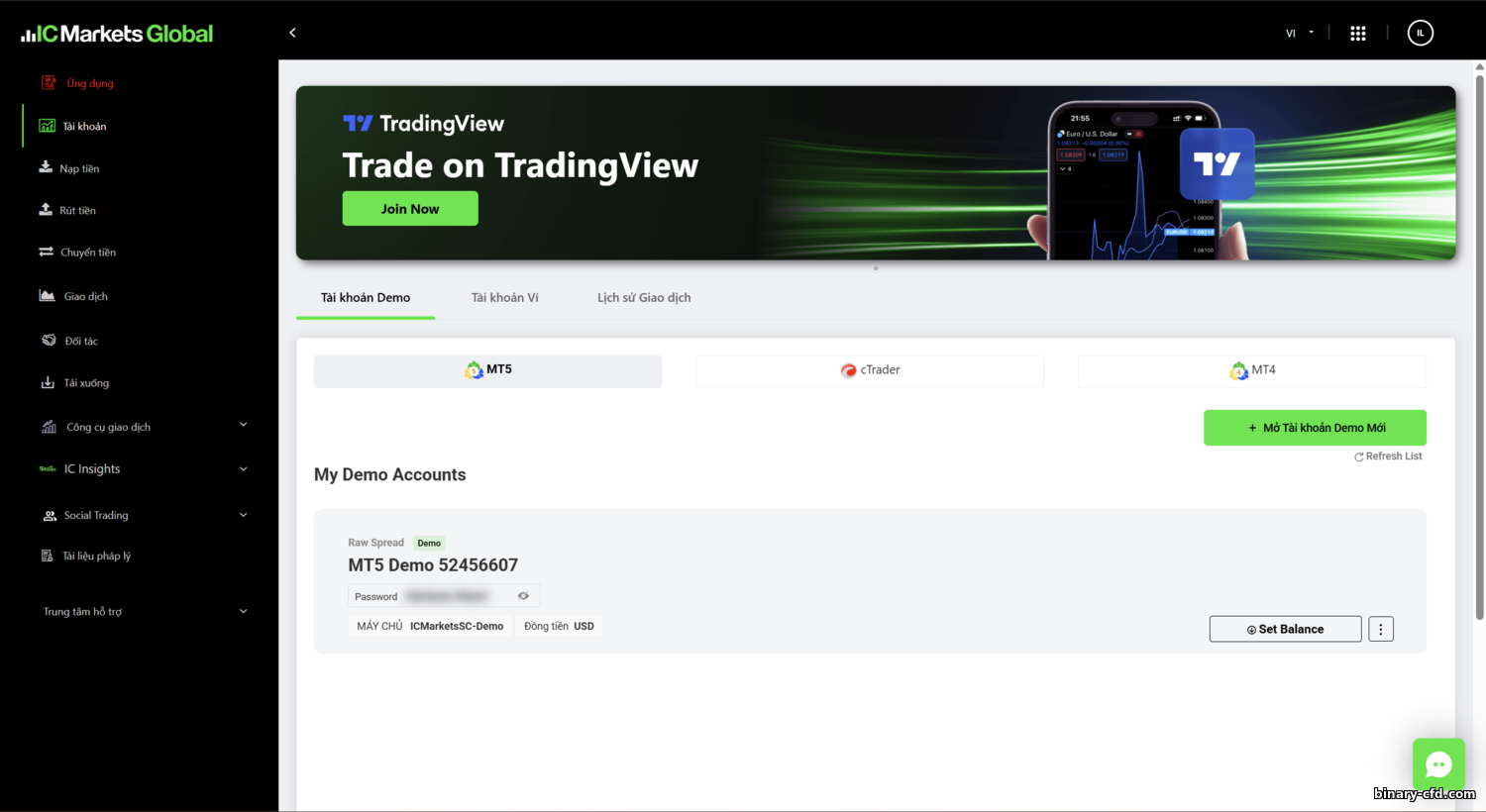 Điểm nhấn là tích hợp TradingView. Khách hàng có thể giao dịch trực tiếp trên TradingView bằng tài khoản IC Markets. Cách dùng: