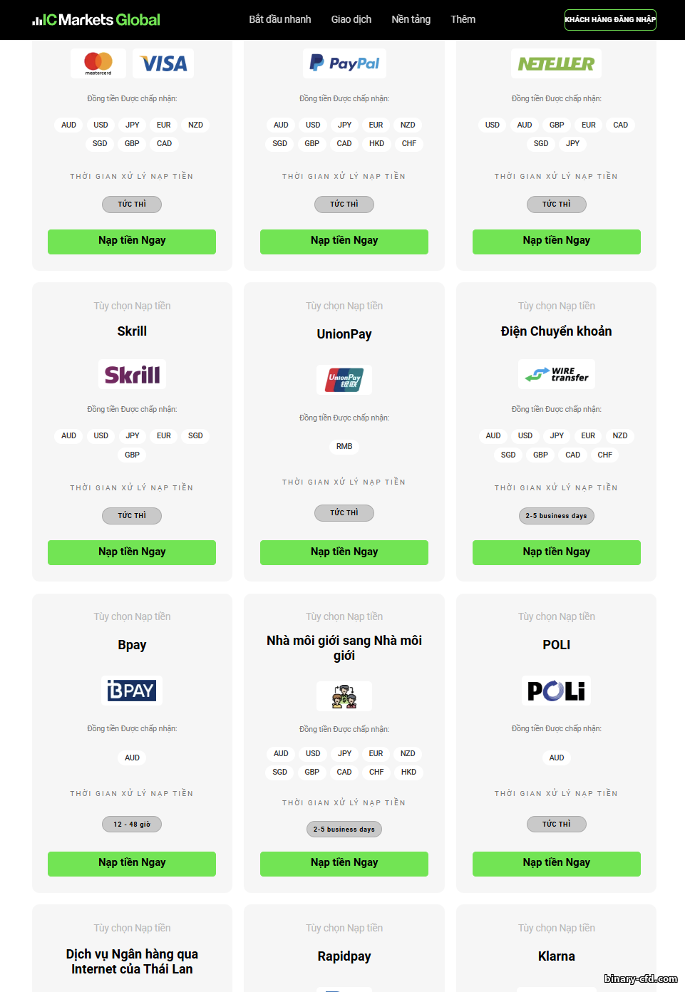 IC Markets không thu phí nạp và hầu hết rút. Dù dùng phương thức nào, số tiền ghi có khớp số bạn gửi (nhà môi giới gánh phí nhà cung cấp thanh toán). Tương tự với rút về thẻ và ví điện tử (Skrill, Neteller, PayPal, v.v.) — 0% phía nhà môi giới. Đây là lợi thế so với nơi thu $10–30 mỗi lần rút.