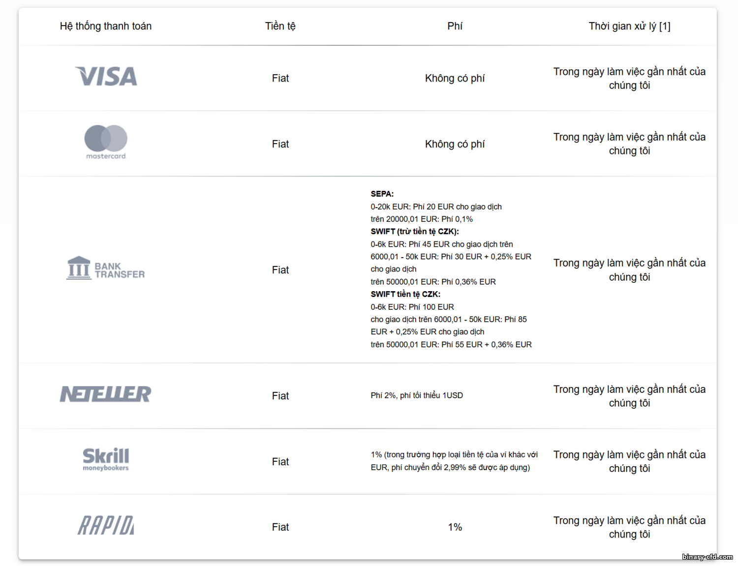 | Tiền tệ tài khoản | USD, EUR, RUB (tài khoản offshore); với tài khoản EU còn có PLN, CZK, GBP. |