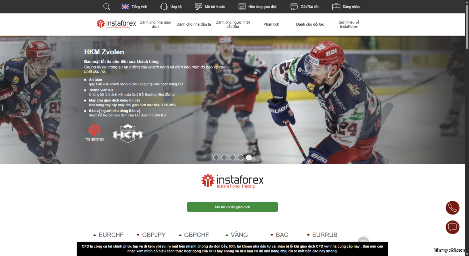 - Thông tin nhanh: dữ liệu chính về Instaforex
