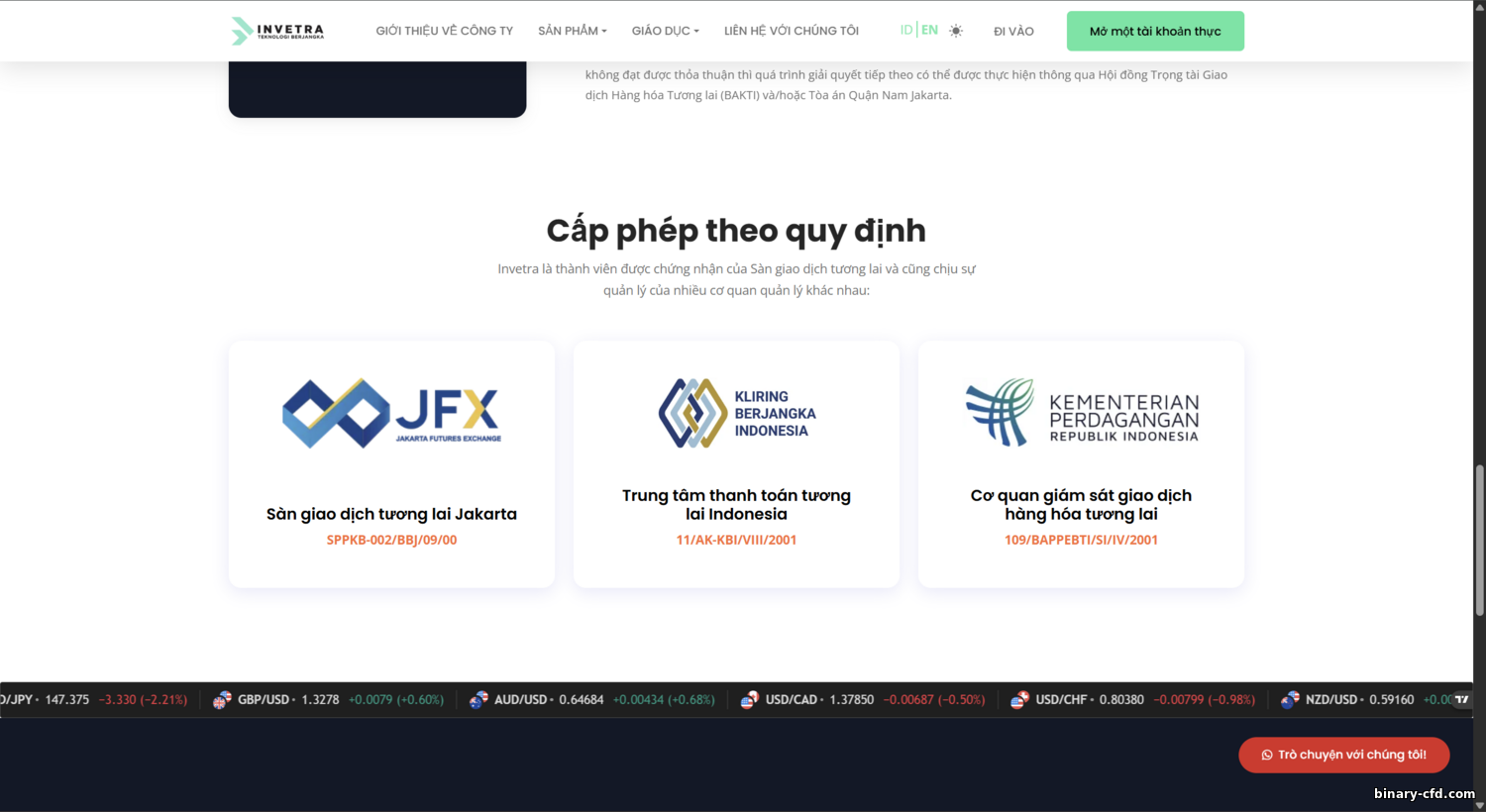 Invetra cho biết họ được cấp phép và quản lý đầy đủ tại Indonesia. Cơ quan giám sát là BAPPEBTI—Cơ quan Quản lý Giao dịch Hàng hóa Tương lai Indonesia (cơ quan nhà nước giám sát thị trường phái sinh). Invetra nắm giấy phép BAPPEBTI: theo nguồn công khai, số 109/BAPPEBTI/SI/IV/2001. Con số cho thấy tháng 4/2001. Như đã nêu, giấy phép ban đầu cấp cho Jalatama Artha Berjangka (tiền nhiệm của Invetra). Giấy phép vẫn có hiệu lực và được “chuyển” cho PT Invetra Teknologi Berjangka năm 2024 khi đổi tên.