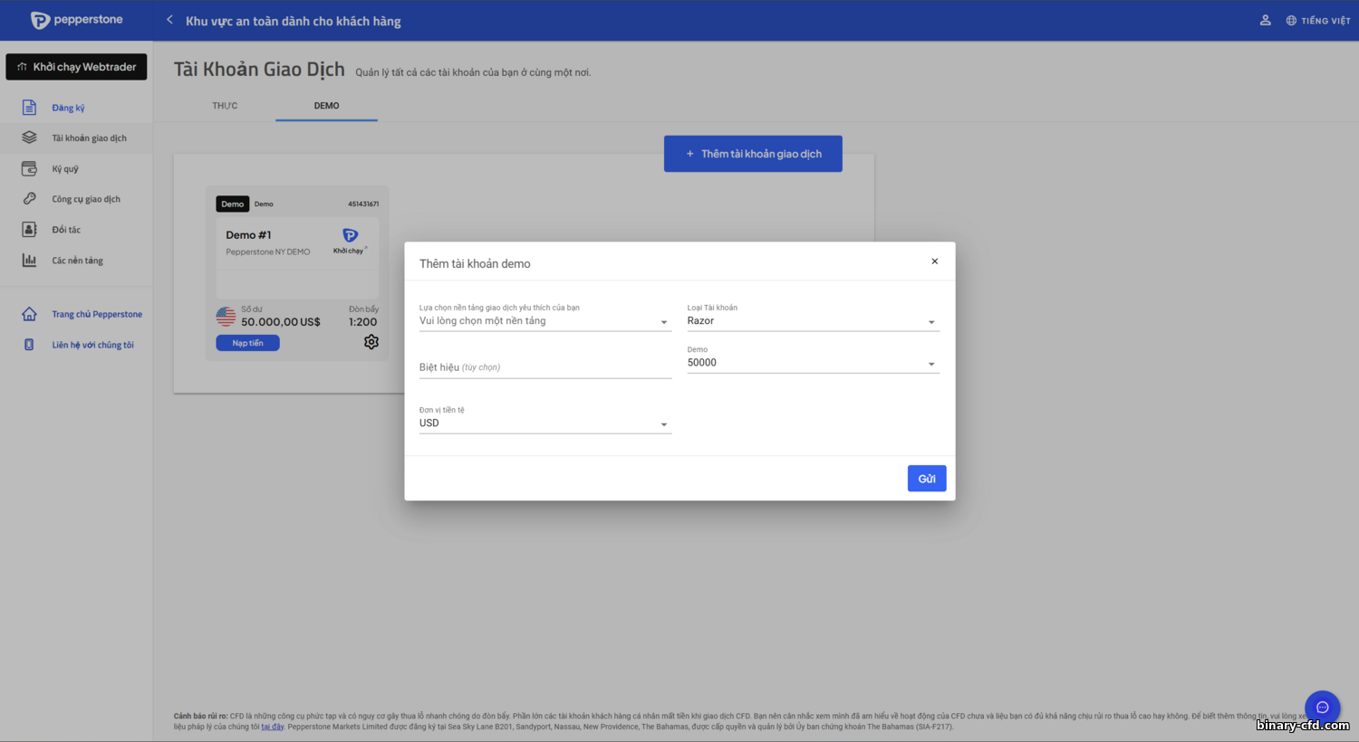 Tài khoản demo Pepperstone