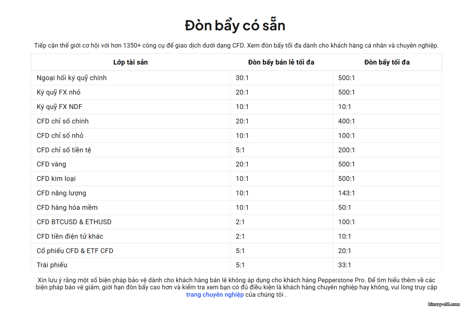 Tư cách chuyên nghiệp—tới ~1:400. Ở Úc và EU, bạn có thể xin nâng cấp Chuyên nghiệp nếu đáp ứng tiêu chí (kinh nghiệm, tài sản, tần suất giao dịch). Pepperstone hỗ trợ—chứng minh danh mục trên €500k (EU) hoặc kinh nghiệm ngành liên quan và lịch sử giao dịch đáng kể. Khi là Pro, trần ESMA không áp dụng và đòn bẩy có thể tăng tới ~1:400–1:500 (Úc cho tới 1:500). Tuy nhiên bạn mất một số bảo vệ của bán lẻ: ví dụ bảo vệ số dư âm và quỹ bồi thường. Đây là thông lệ. Nếu thực sự chuyên nghiệp và hiểu rủi ro, đòn bẩy cao có thể hữu ích—nhưng đừng lạm dụng.