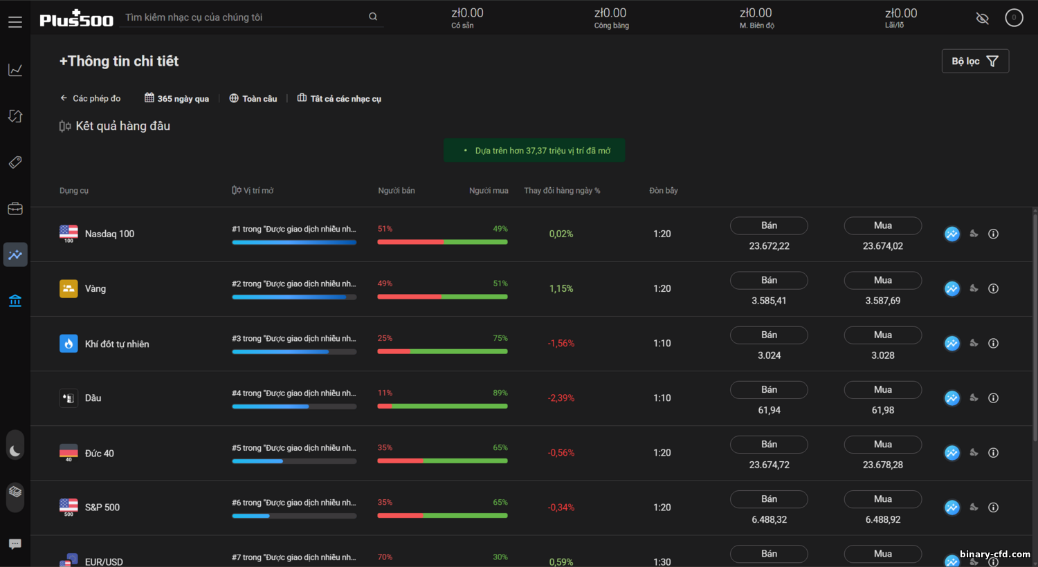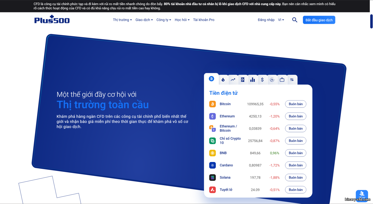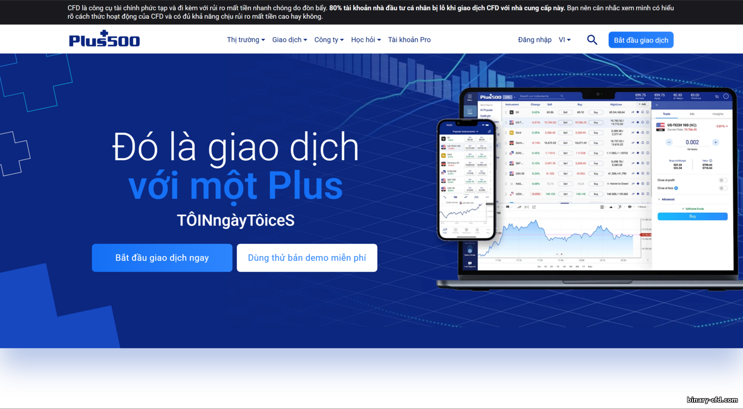 - Danh mục công cụ rộng. Plus500 cung cấp hơn 2.800 thị trường: forex, cổ phiếu, chỉ số, hàng hóa, tiền điện tử, ETF, và cả quyền chọn dạng CFD. Bạn có thể đa dạng hóa mà không cần đổi nhà môi giới.