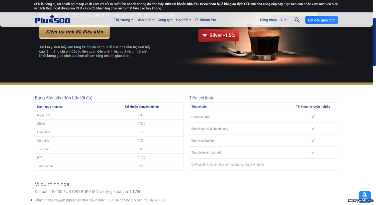 Ví dụ đòn bẩy: với trần 1:30, mở 0,01 lot EUR/USD (~€1.000 danh nghĩa) cần khoảng €33 ký quỹ. Không có đòn bẩy thì cần €1.000. Yêu cầu ký quỹ tại Plus500 khá khiêm tốn—bạn có thể giao dịch với vài trăm đô bằng cách mở vị thế rất nhỏ.