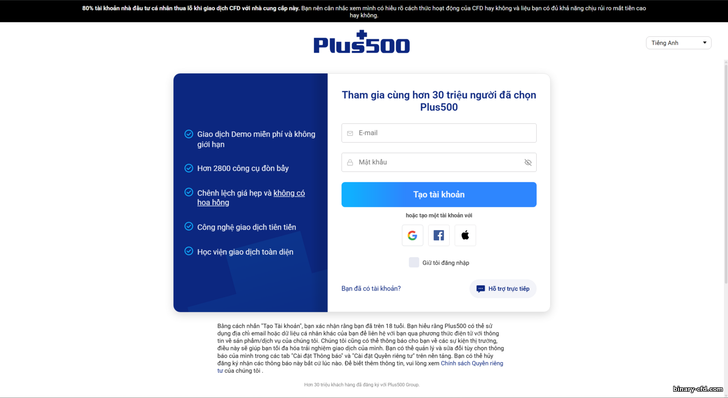 Plus500 là nhà môi giới CFD toàn cầu và công ty fintech cung cấp quyền truy cập nhiều thị trường tài chính qua nền tảng giao dịch riêng. Thành lập năm 2008 tại Israel bởi nhóm cựu sinh viên Technion, công ty đã phát triển thành một trong các tên tuổi dẫn đầu ngành. Trụ sở hiện ở London, với văn phòng và pháp nhân trên khắp châu Âu, châu Á, Úc và các khu vực khác. Nhà môi giới phục vụ khách hàng tại hàng chục quốc gia (trang web hỗ trợ 30+ ngôn ngữ) và cho biết có hơn 30 triệu tài khoản đăng ký. Quy mô đó khá ấn tượng.