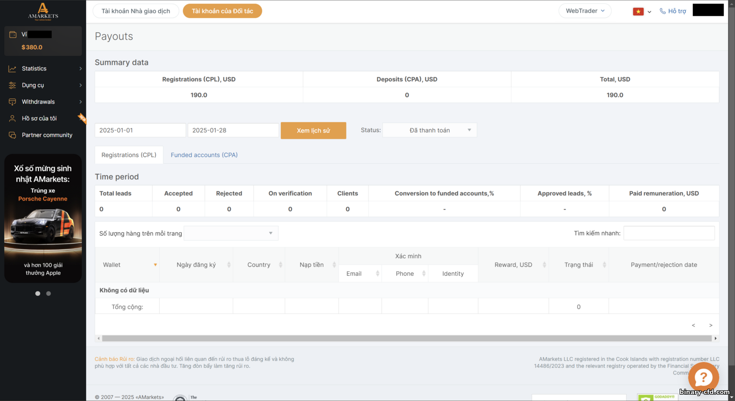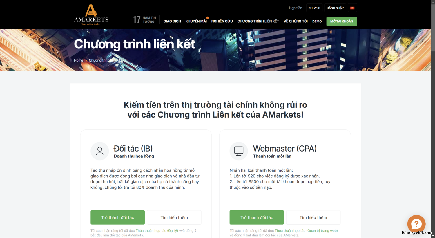 Revenue Share, Turnover Share, CPA, Sub-Affiliate | AMarkets | Theo yêu cầu | Website Đăng Ký | |||