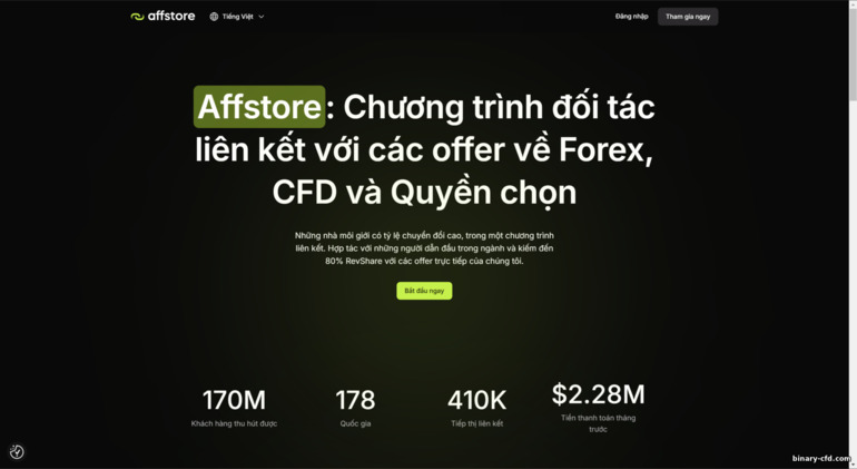 AffStore giúp bạn truy cập nhiều broker Binary Options, CFD và Forex (bao gồm IQ Option, SabioTrade, QuadCode Markets, và Exnova), rất tiện cho việc thử nghiệm nhiều offer khác nhau. Tuy nhiên, hãy chuẩn bị tâm lý cạnh tranh cao và quy định traffic khá nghiêm ngặt.